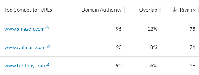 No big surprises here, and no one should be shocked that this list includes not only brick-and-mortar competitors, but online retail juggernauts like Amazon. Let’s take a deeper look, though (the following are competitors #8, #7, and #22 in our current data):