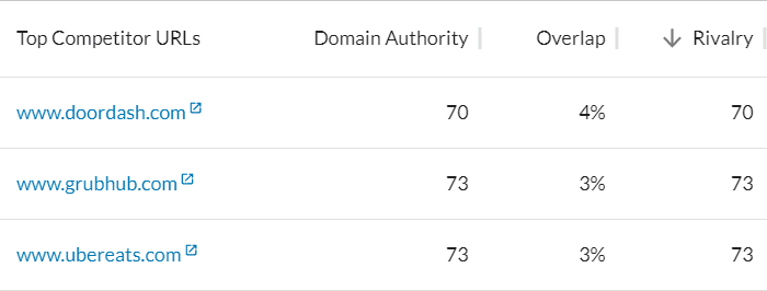 Take, for example, McDonald’s — you might expect the competition to include Wendy’s, Burger King, Taco Bell, and other fast food chains with physical restaurants. Meanwhile, here are the second through fourth results from True Competitor: